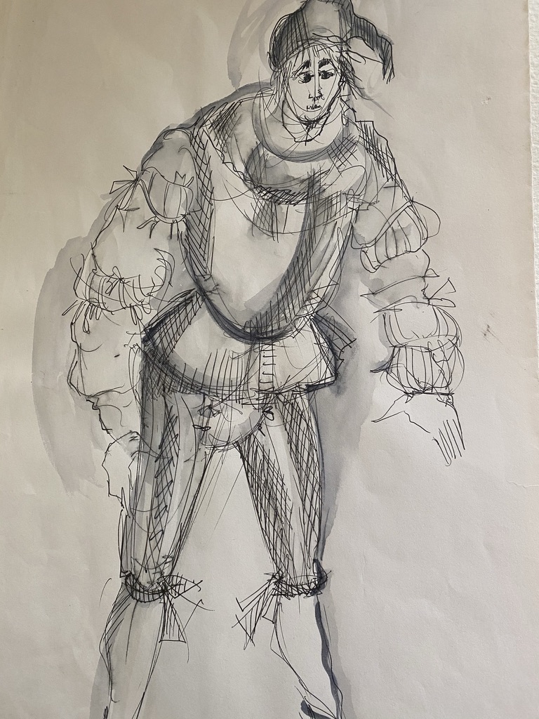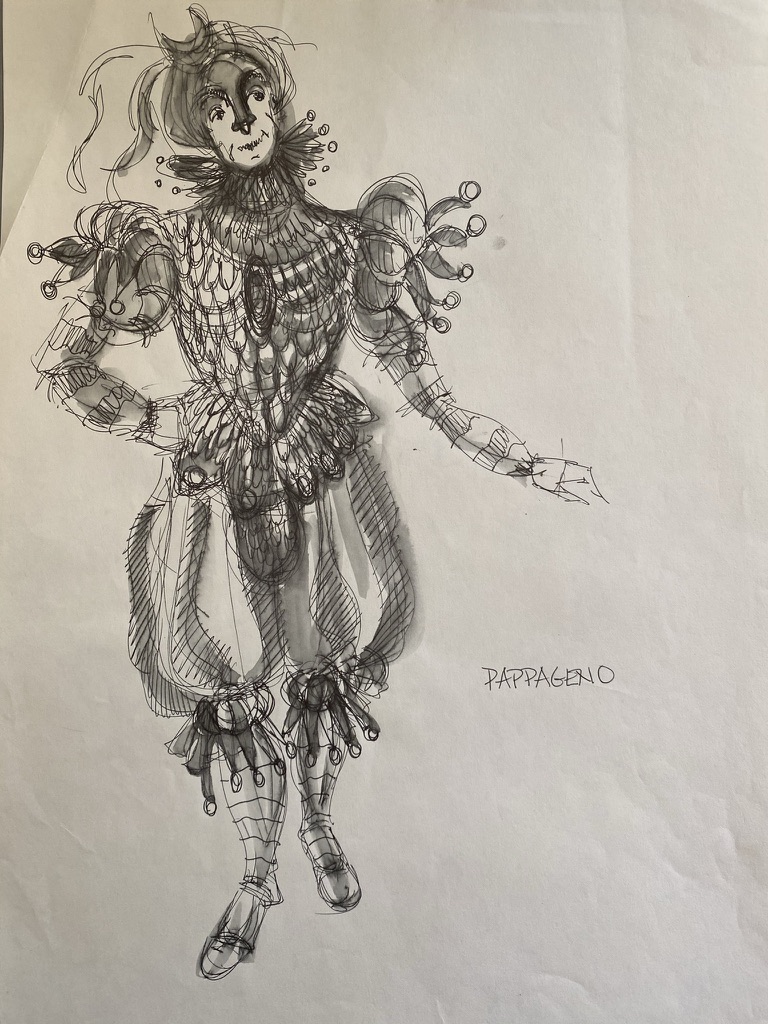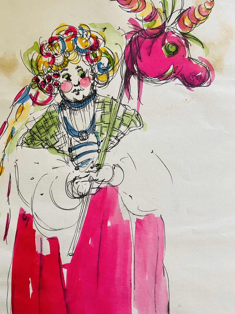 These images are from the depths of the sketchbook and portfolio archive, for some costumes that were created for shows, projects and concept sketches for meetings. They range in style, but always I feel comfortable with lines and color, rather than form or function. The function comes later when the costume itself becomes a pattern and more of a reality. At that point, the clothes need to become real. Sometimes real clothes are used to add into the fantasy. That is even more interesting sometimes.